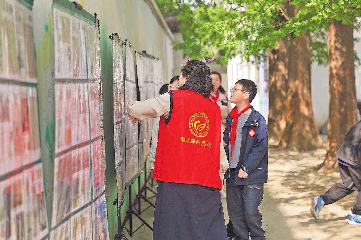 泰州邮政党员志愿者开展“邮票党史进校园”特色共建活动。