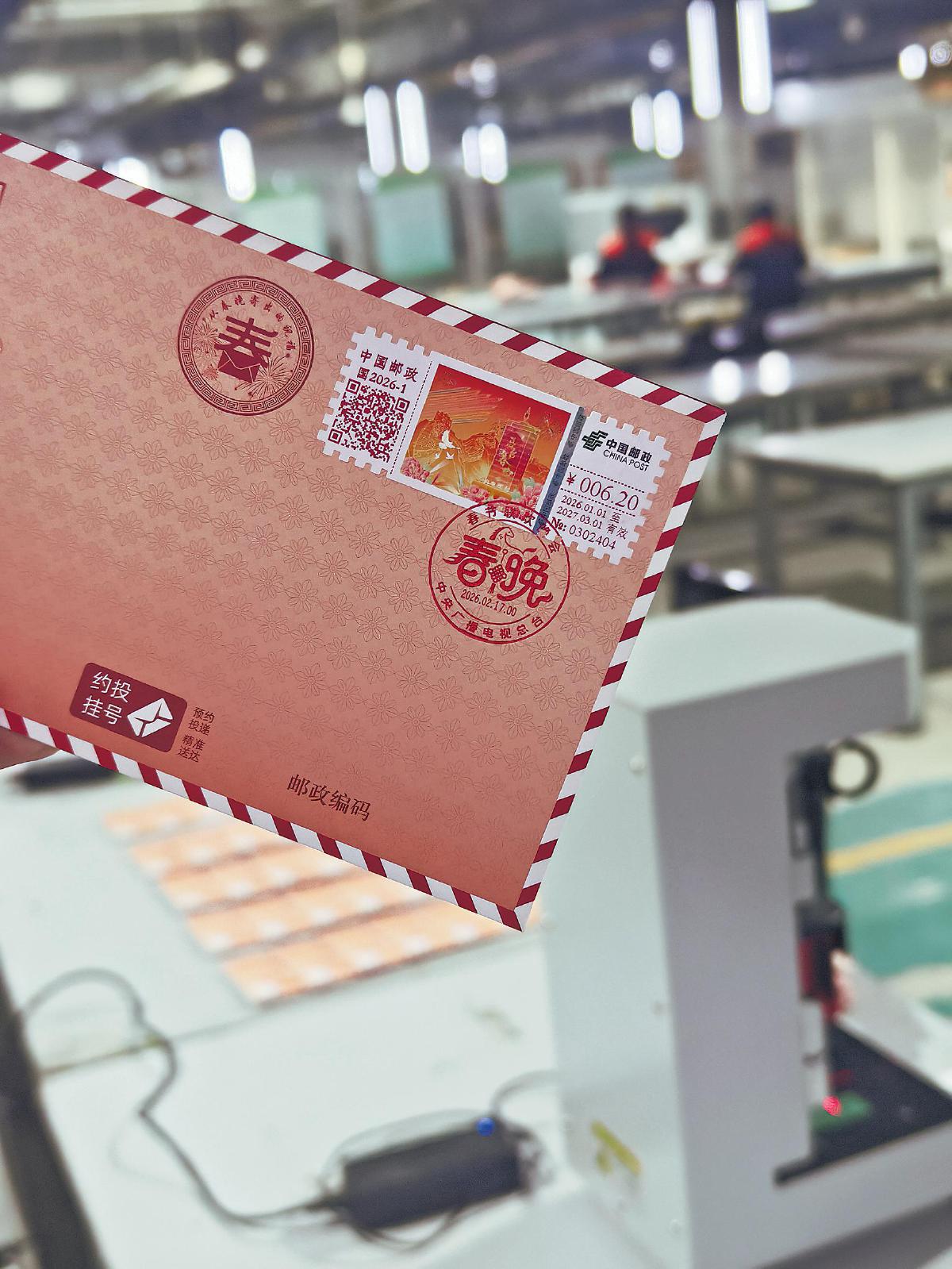 今年是中国邮政第三次携手中央广播电视总台春节联欢晚会,共同启动“春晚寄福”项目。作为这一祝福传递的核心承载方,北京邮政函件服务中心承担了纪念封从封装、盖戳到收寄封发的全部关键流程,堪称幕后的“祝福中枢”。