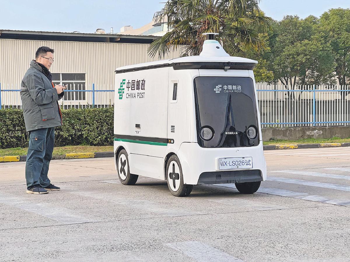 苏州邮政工作人员操控无人车
