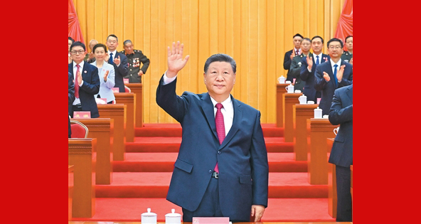 上午10时30分许,在欢快的乐曲声中,习近平等领导同志走上主席台,全场响起长时间的热烈掌声。