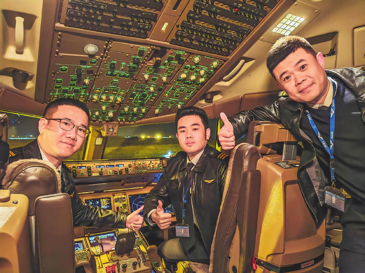 8.19日5:00,起飞前,机组人员为自己点赞加油,预祝飞行圆满成功。