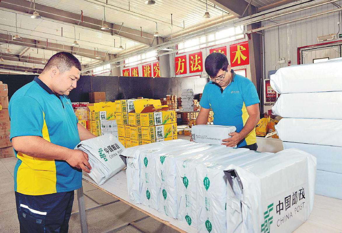 麦麦提艾力·吾布力在收寄电商邮件。