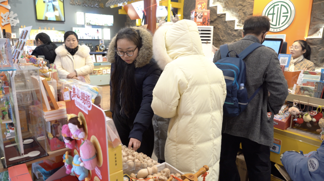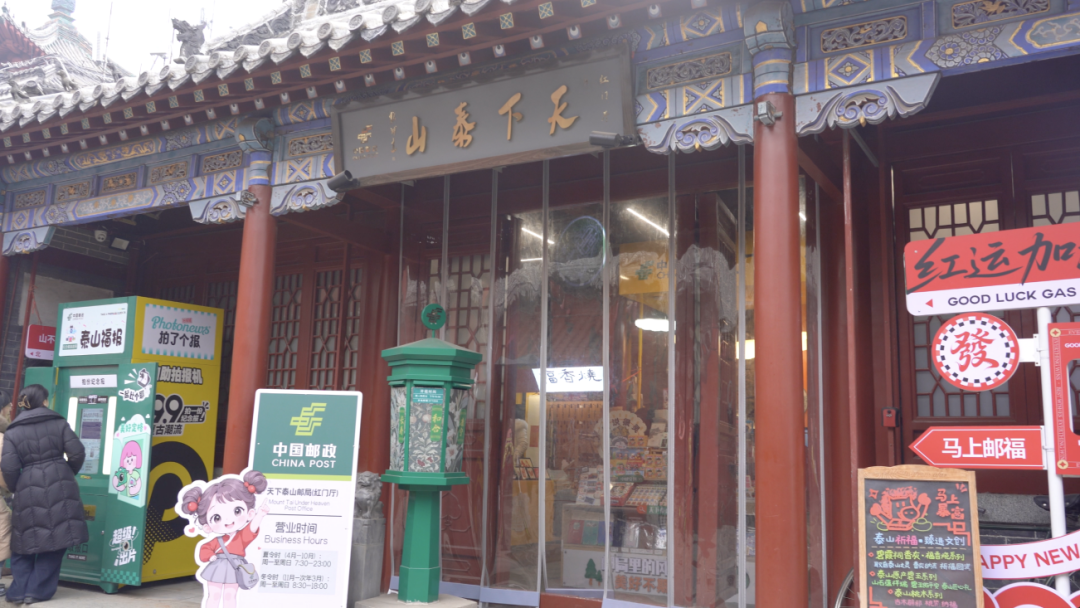 记者跟着宋现生来到他曾经的投递起点红门。这里,“国潮风”的天下泰山主题邮局成了打卡新地标。从墙面到展台,融合泰山文化元素的冰箱贴、徽章、书签等产品琳琅满目。“孩子特别喜欢,感觉把泰山带在了身上!”游客秦兵说。“我们系统打造了封片、文创、祈福、登山装备、集邮收藏五大产品系列,2025年自主研发产品超400款。”据主题邮局负责人张迪介绍,他们请了很多拓印、宋锦、剪纸等非遗文化方面的老师,就是想在这方寸之地,装下泰山文化的厚度。