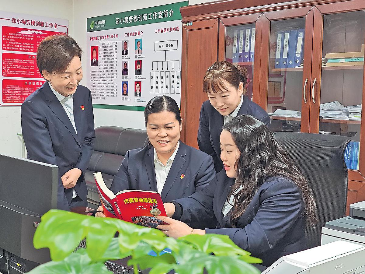 2021年,在她的积极带动下,郑小梅劳模创新工作室正式成立。工作室以金融业务骨干和网点负责人为核心,聚焦业务攻坚、技能传授和人才培养,坚持“传、帮、带”与“总结、复制、推广”相结合,常态化开展技能培训、业务比武和经验交流,让“爱岗敬业、争创一流、艰苦奋斗、勇于创新、淡泊名利、甘于奉献”的劳模精神代代相传。在她的带领下,工作室从市级邮政示范点,稳步升级为省级创新工作室,2025年正式被集团公司命名为“劳模(先进)和工匠人才创新工作室”,实现从市级到集团级的跨越式发展,成为宛城邮政人才培养、业务创新、攻坚克难的坚强阵地。