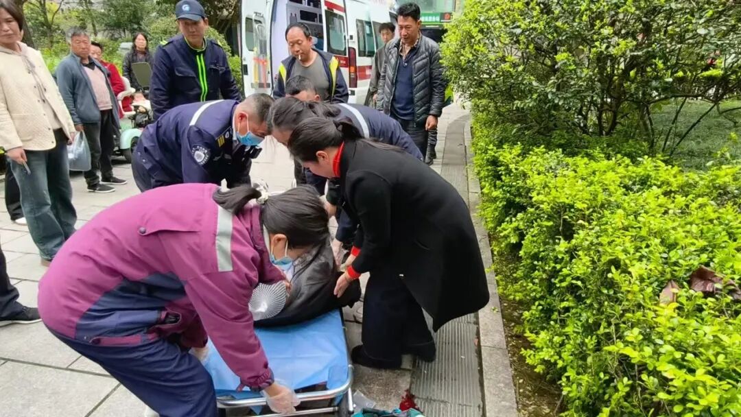 与此同时,社区网格员第一时间联系到老人家属,详细告知现场情况。家属抵达后,陈明学与社区志愿者、网格员、物业工作人员一同协助医护人员,将老人平稳抬上120救护车。直至救护车驶离,他才默默返回岗位,继续完成当天的投递任务。