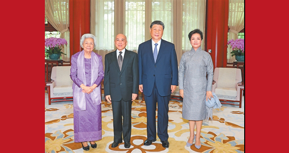 8月26日上午,国家主席习近平和夫人彭丽媛在中南海亲切会见柬埔寨国王西哈莫尼和太后莫尼列。