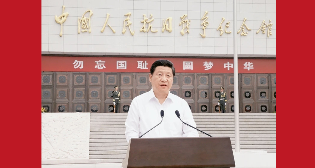 全党全国各族人民要牢记由鲜血和生命铸就的中国人民抗日战争的伟大历史,牢记中国人民为维护民族独立和自由、捍卫祖国主权和尊严建立的伟大功勋,牢记中国人民为世界反法西斯战争胜利作出的伟大贡献,珍视和平、警示未来,坚定不移走和平发展道路,坚定不移维护世界和平,万众一心把中国特色社会主义推向前进。
