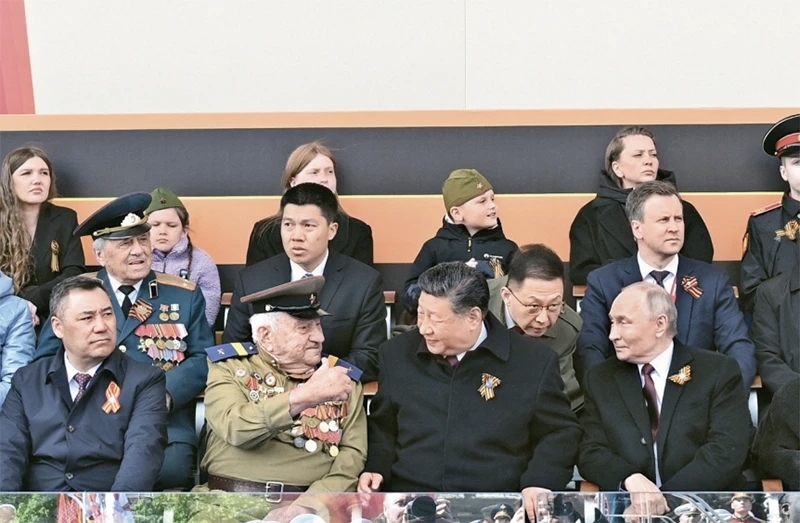 当地时间2025年5月9日,俄罗斯举行盛大庆典,纪念苏联伟大卫国战争胜利80周年。国家主席习近平和来自世界20多个国家及国际组织领导人应邀出席庆典。 新华社记者 谢环驰/摄