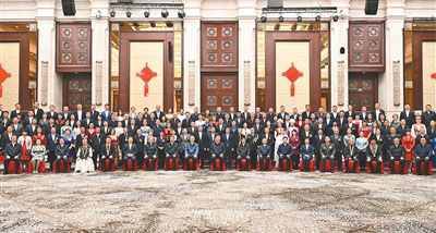 习近平等来到接见现场时,全场响起长时间热烈掌声。习近平向大家挥手致意,不时同代表亲切交流,并同大家合影留念。